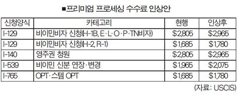 H-1B 비자 등 최대 3천달러 육박… 이민 신청 급행 수수료 또 오른다